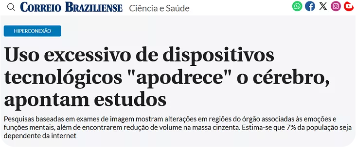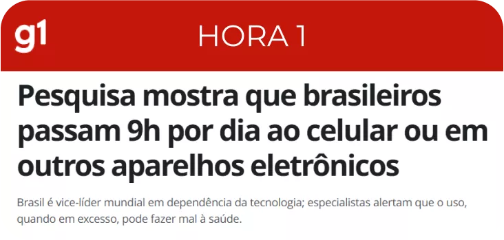 O brasileiro passa, em média, 9 horas por dia no celular. Grande parte desse tempo é consumido com conteúdos rasos, que enfraquecem a capacidade de foco, raciocínio e criação.